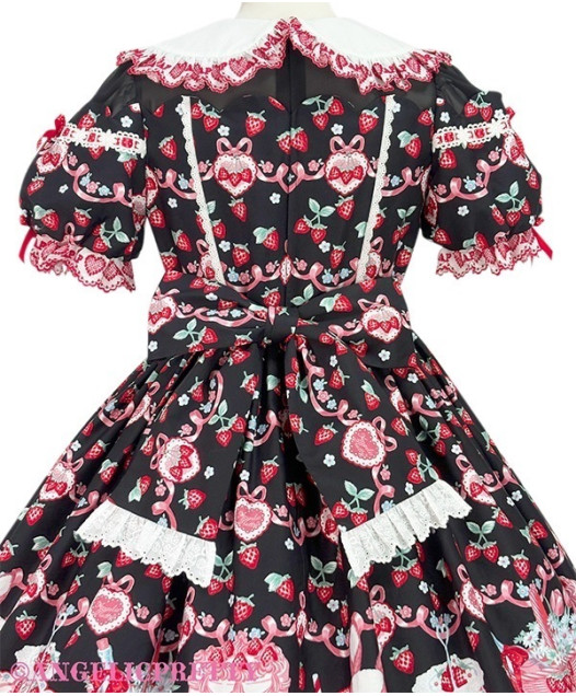 ★ De la dentelle coton à motif de fraises est utilisée.
